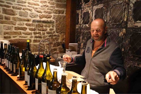 ステファン・ティソ先生による“ジュラワイン教室。さて実地、ワインをテイスティングするぞ